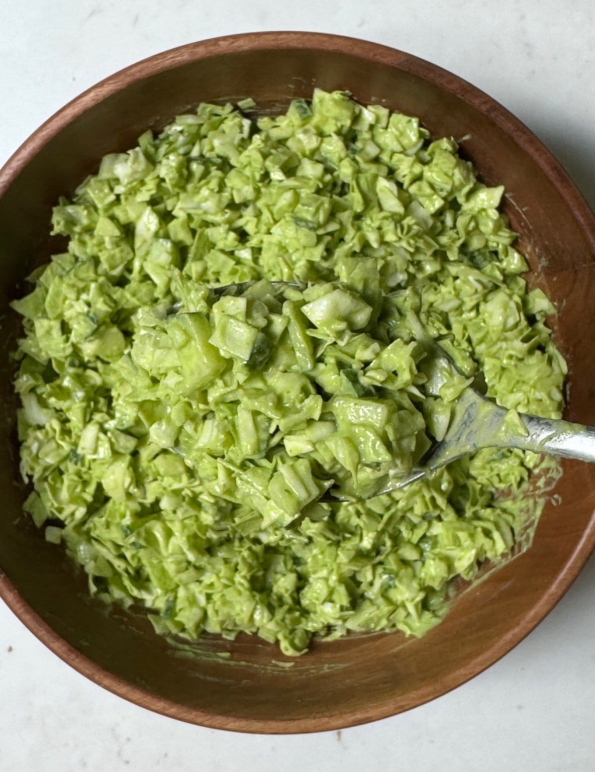 This vibrant, creamy green chopped salad is full of crunchy cabbage, fresh herbs, and a dreamy avocado-cashew dressing. It’s the perfect refreshing side for any meal — or enjoy it on its own with a spoon!